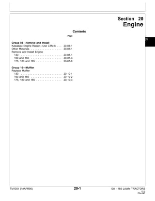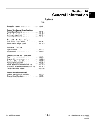 John Deere 130 160 165 175 180 185 Lawn Tractors Service Manual